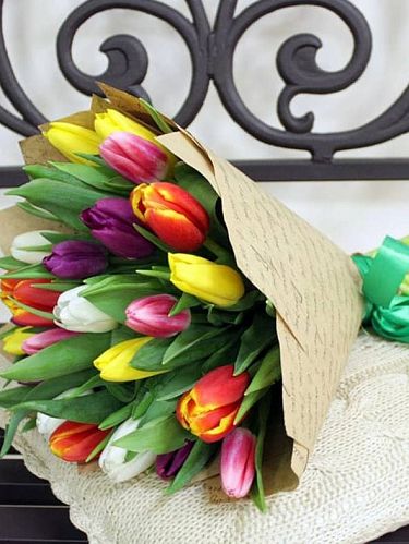 Количество: 5 штук хризантем на фото, и 5 Ирисов фиолетовых и 5 белых роз, можно сделать любое количество
