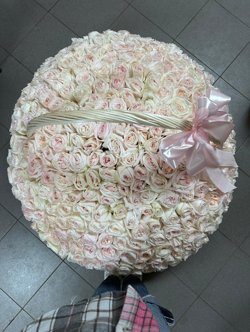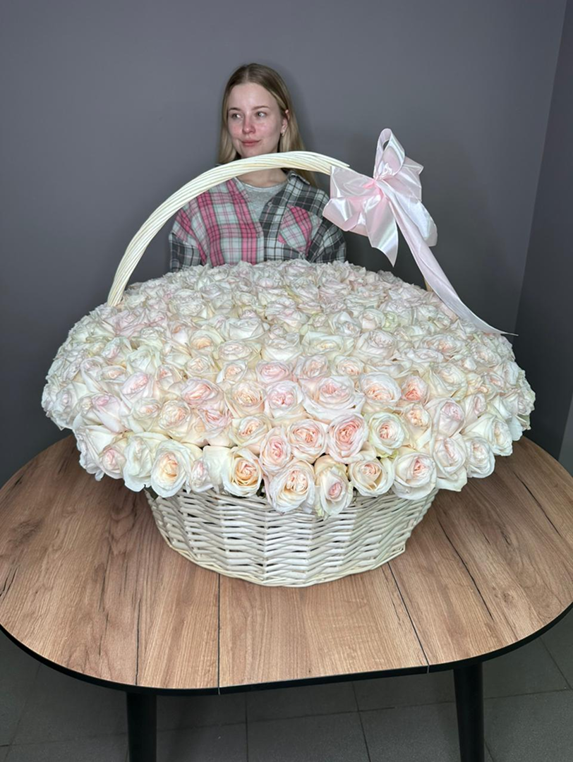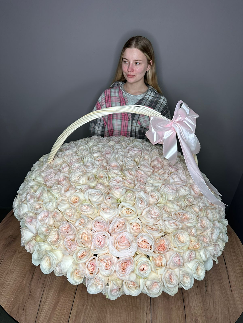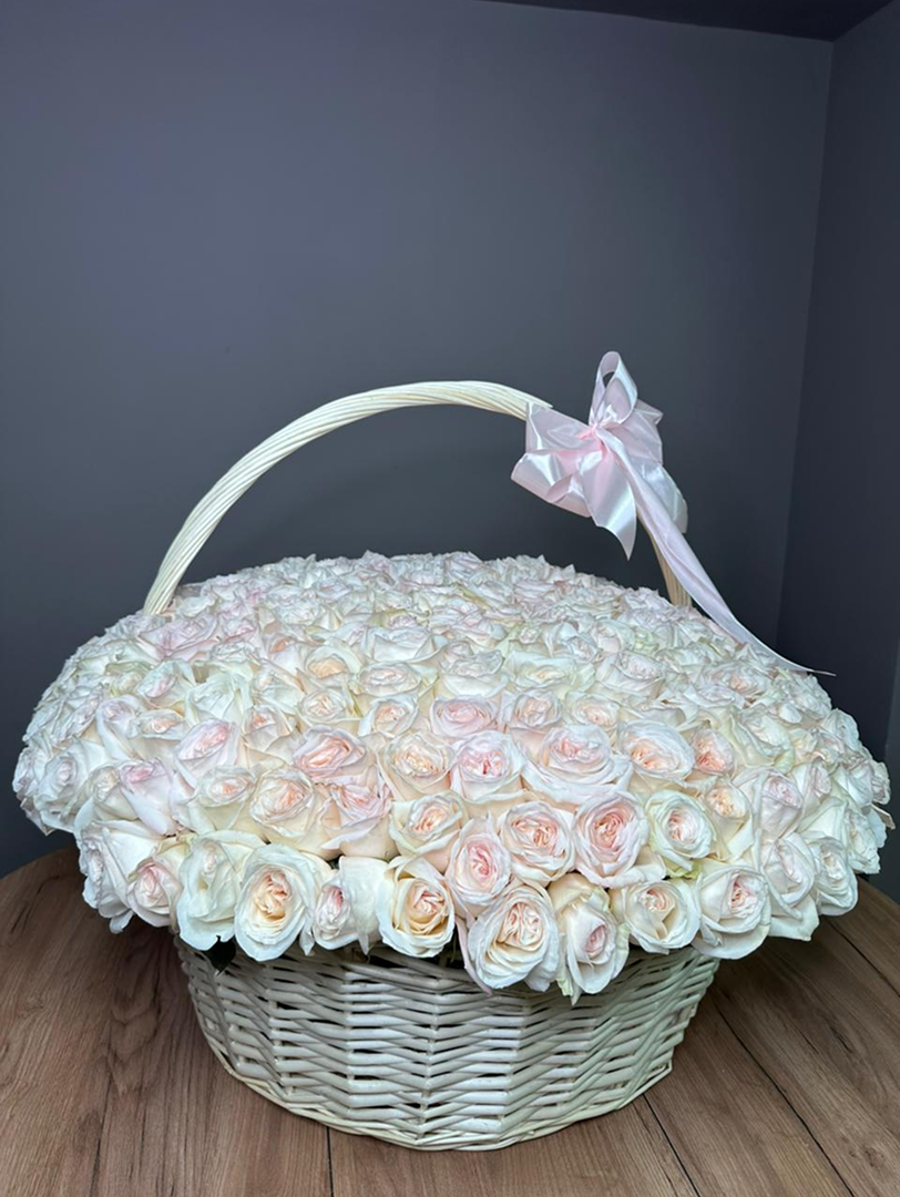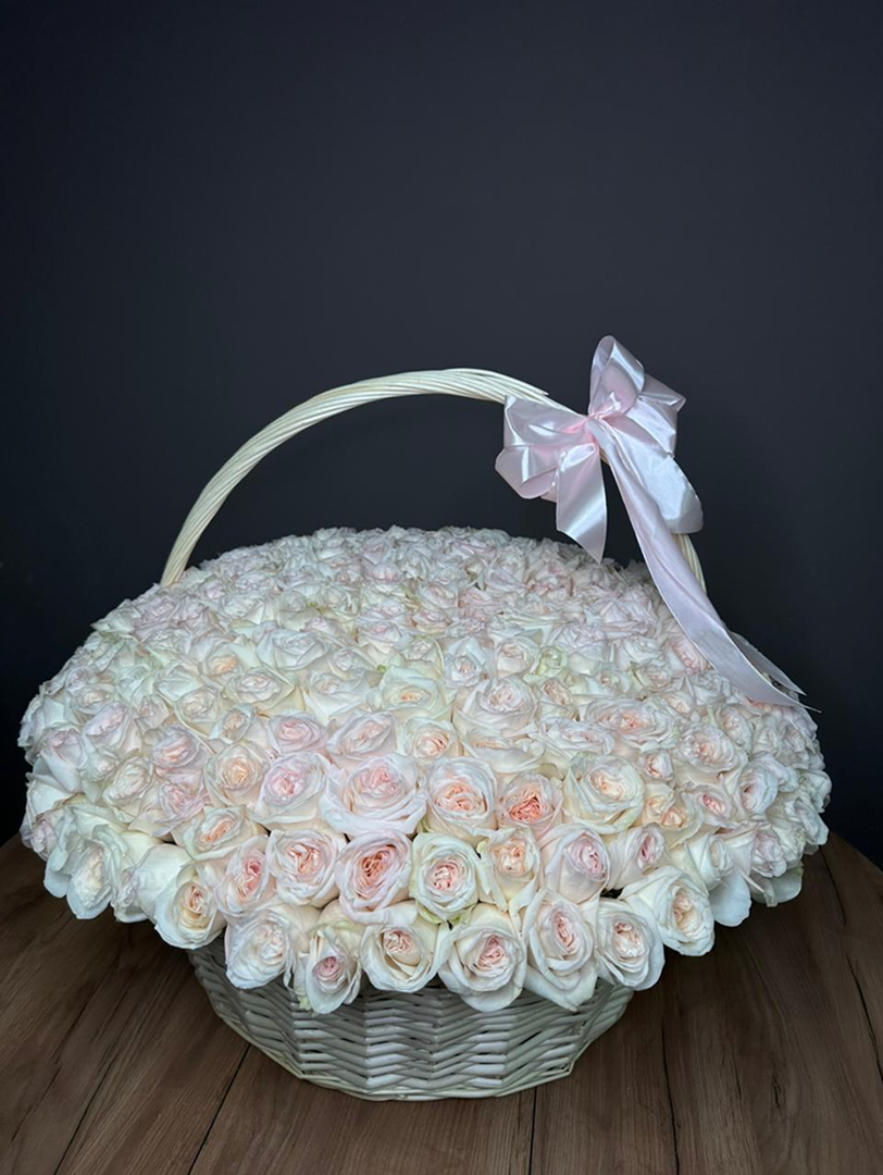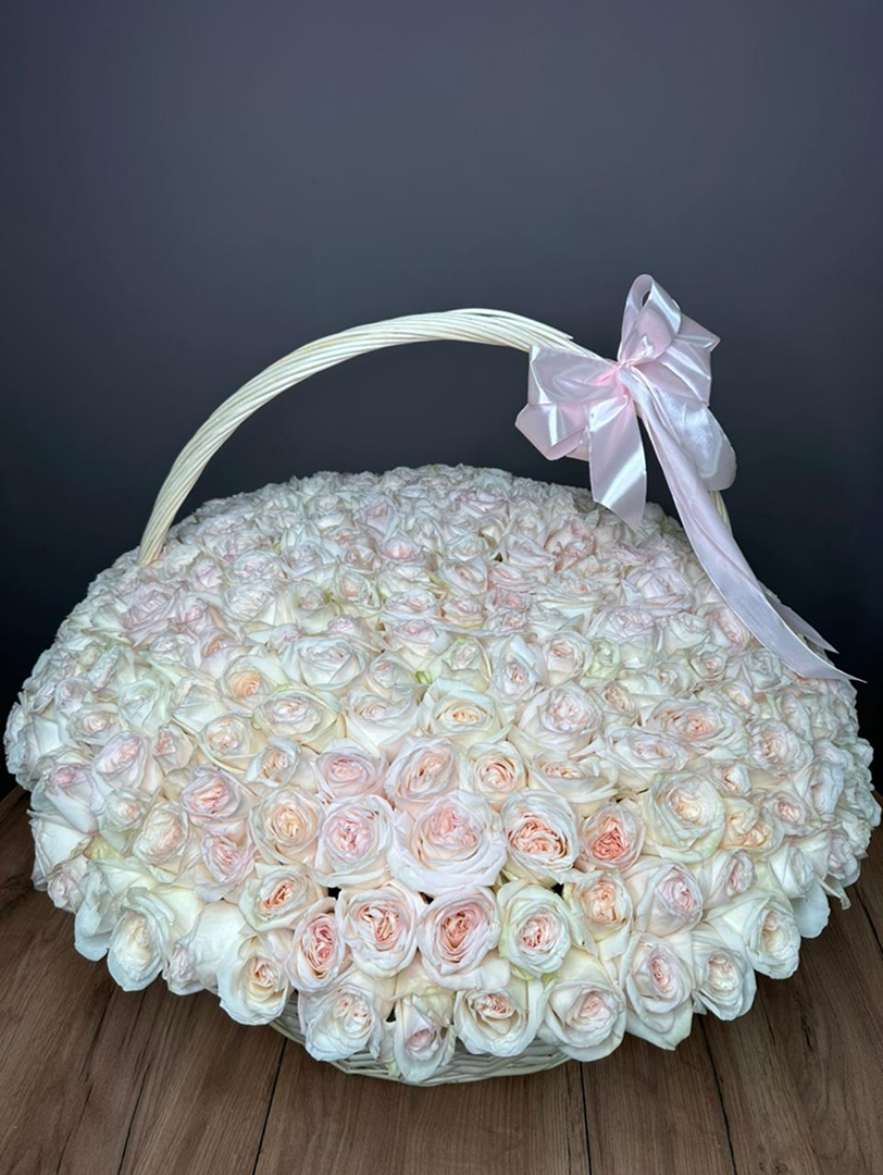 281 пионовидная роза Вайт Охара в Корзине
